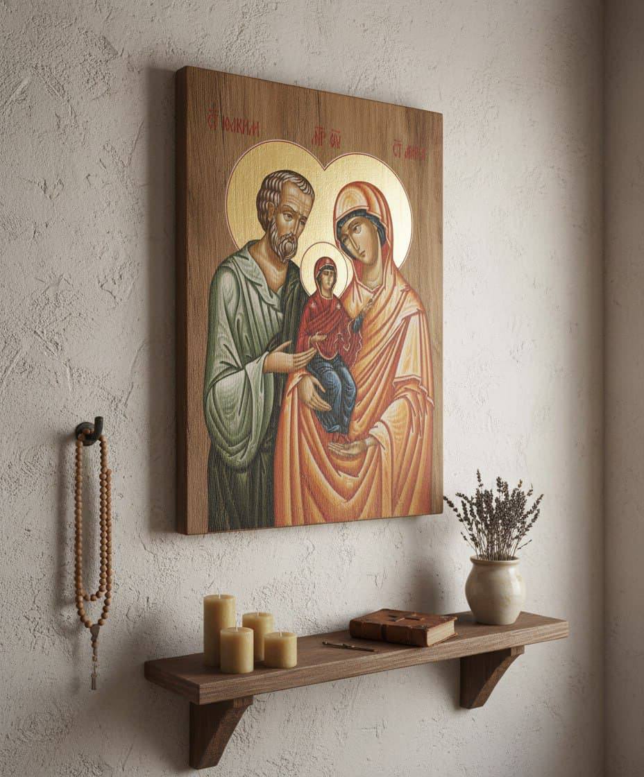Эта икона не просто украшает пространство — она становится духовным центром, напоминая о важности семейных уз, любви и заботы друг о друге. Позвольте этому образу наполнить ваш дом светом, теплом и благодатью.