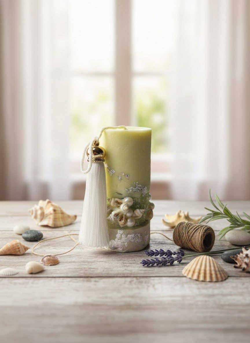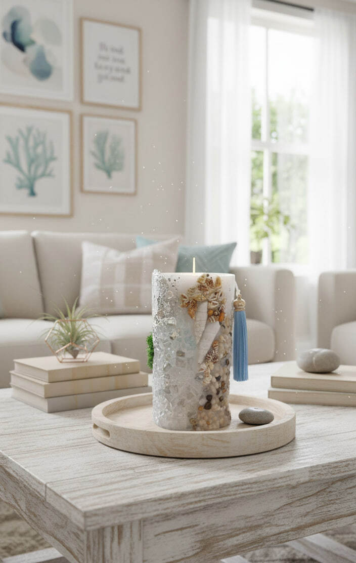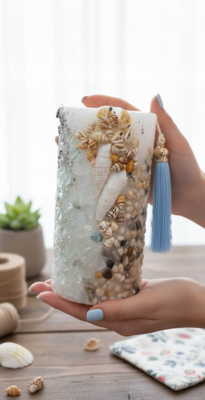 Свеча не только украсит любой интерьер, но и создаст атмосферу уюта и спокойствия, напоминая о безмятежности морского побережья. Такой предмет станет отличным подарком для ценителей оригинальных вещей или стильным элементом декора в гостиной, спальне или зоне релаксации.