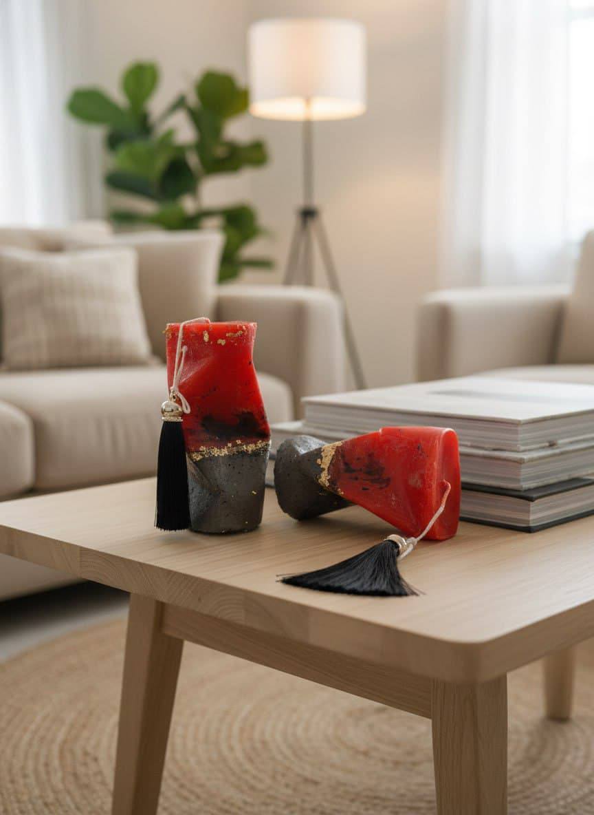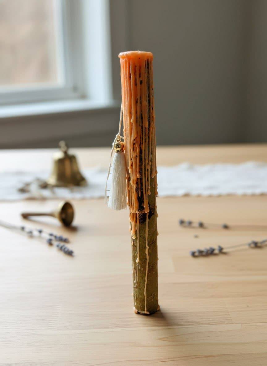 Декор: изящная кисточка с металлическим акцентом, закреплённая на фитиле, добавляет изделию шарма и завершённости. Она служит не только украшением, но и своеобразным оберегом.