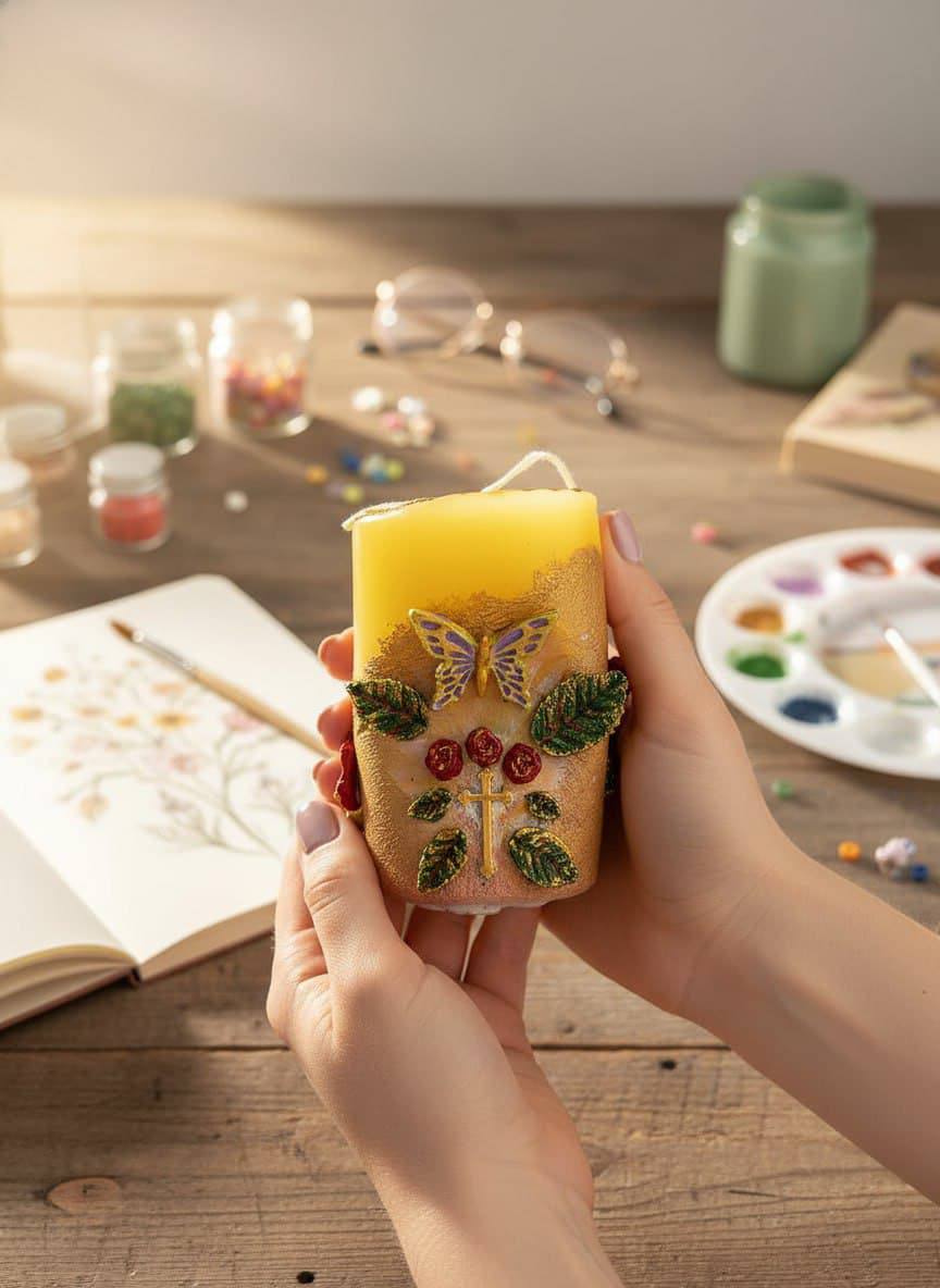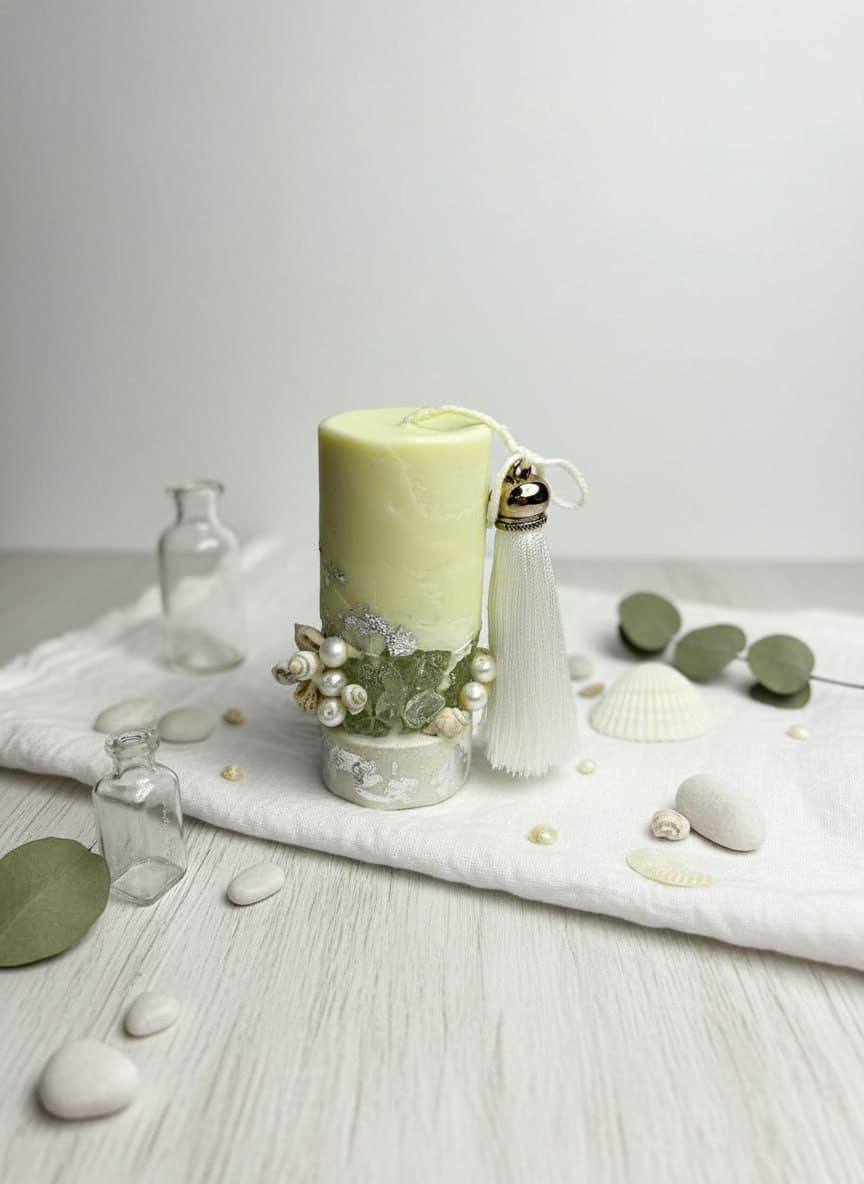 Ручная работа: каждая деталь декора выполнена вручную, поэтому каждая свеча уникальна — незначительные отличия в расположении элементов делают изделие особенным.