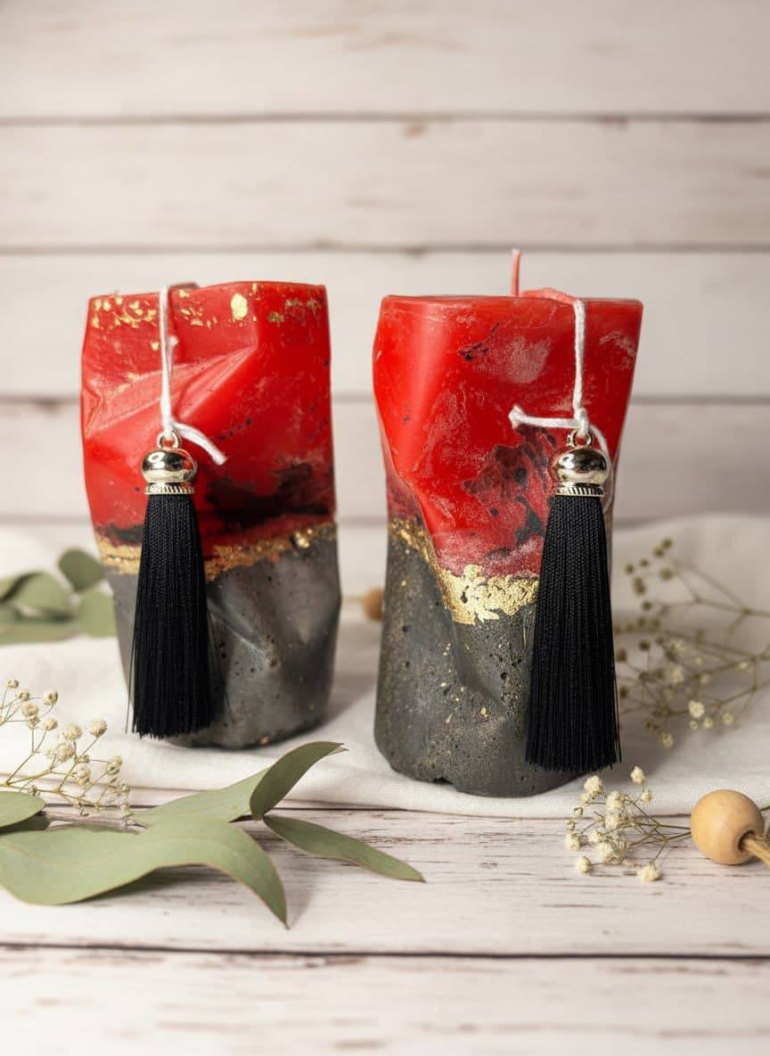 Эта изысканная свеча ручной работы — уникальное сочетание эстетики и функциональности. Изделие выполнено из высококачественного парафина с насыщенным алым оттенком, который эффектно контрастирует с массивным бетонным основанием. Особенности свечи: