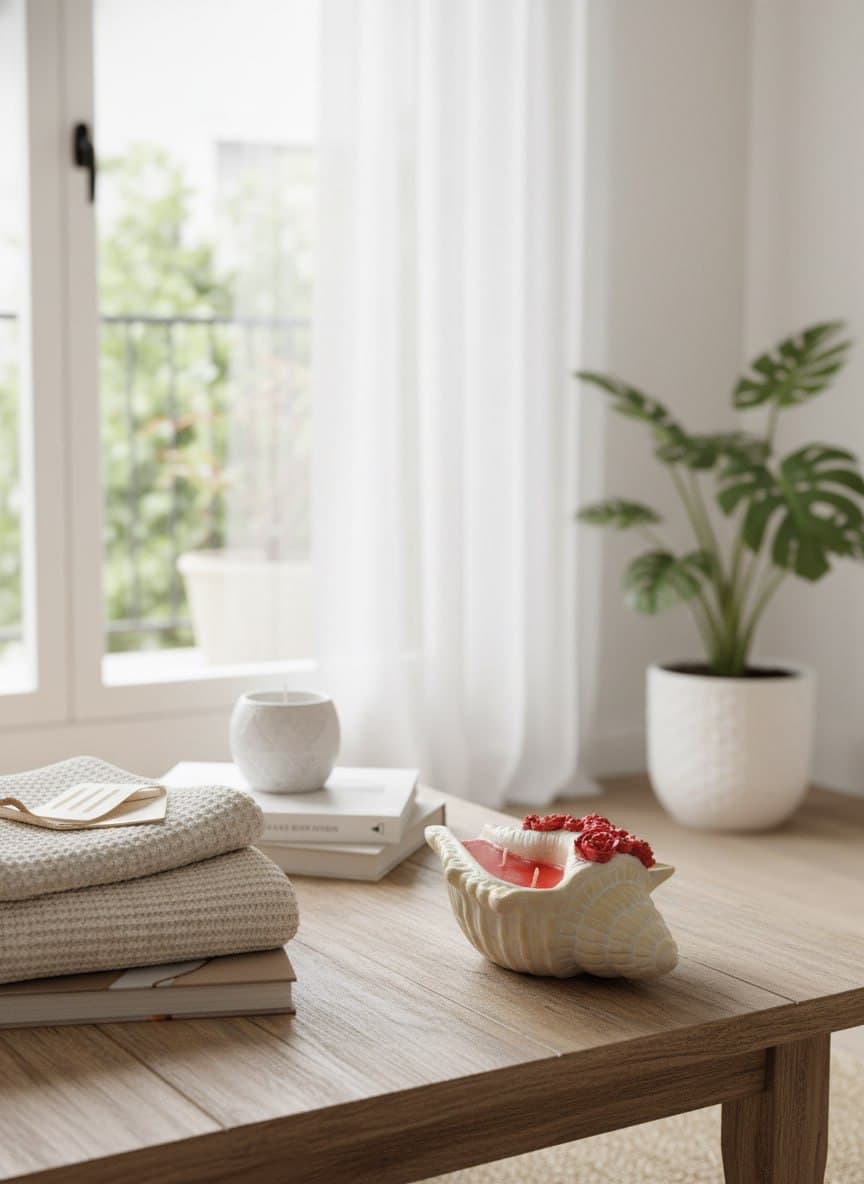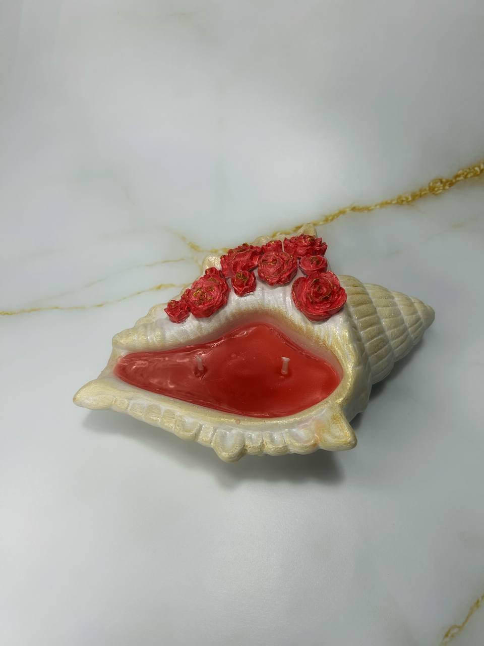 Изящная свеча, заключённая в подсвечник в виде натуральной раковины, украшенную миниатюрными красными розами — воплощение утончённой морской эстетики. Насыщенный красный воск создаёт яркий контраст с перламутровым блеском ракушки, а декоративные цветы добавляют нотку романтики. Этот аксессуар станет изысканным элементом декора, наполняя пространство теплом и уютом. Идеальный выбор для ценителей природных материалов и авторских изделий.