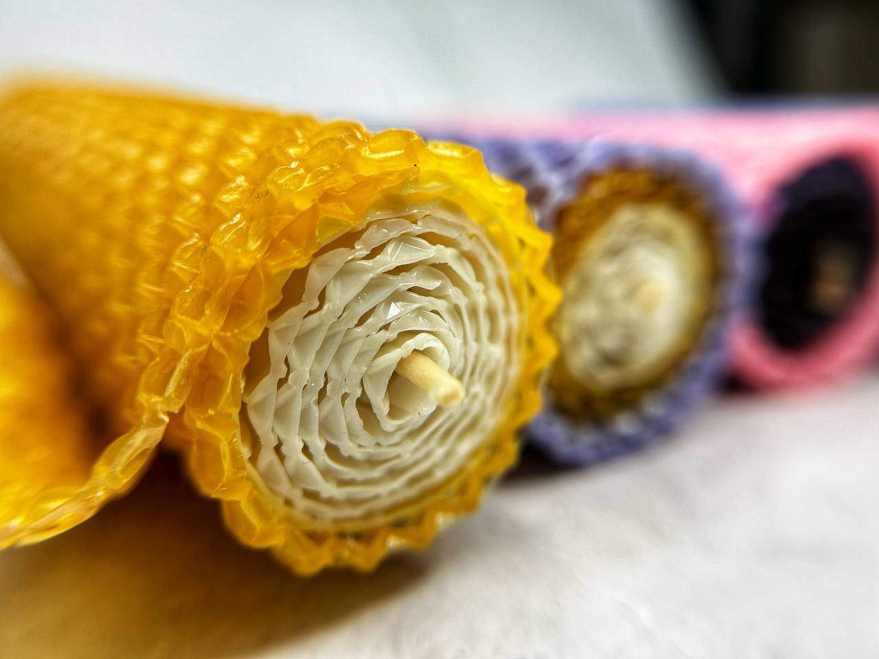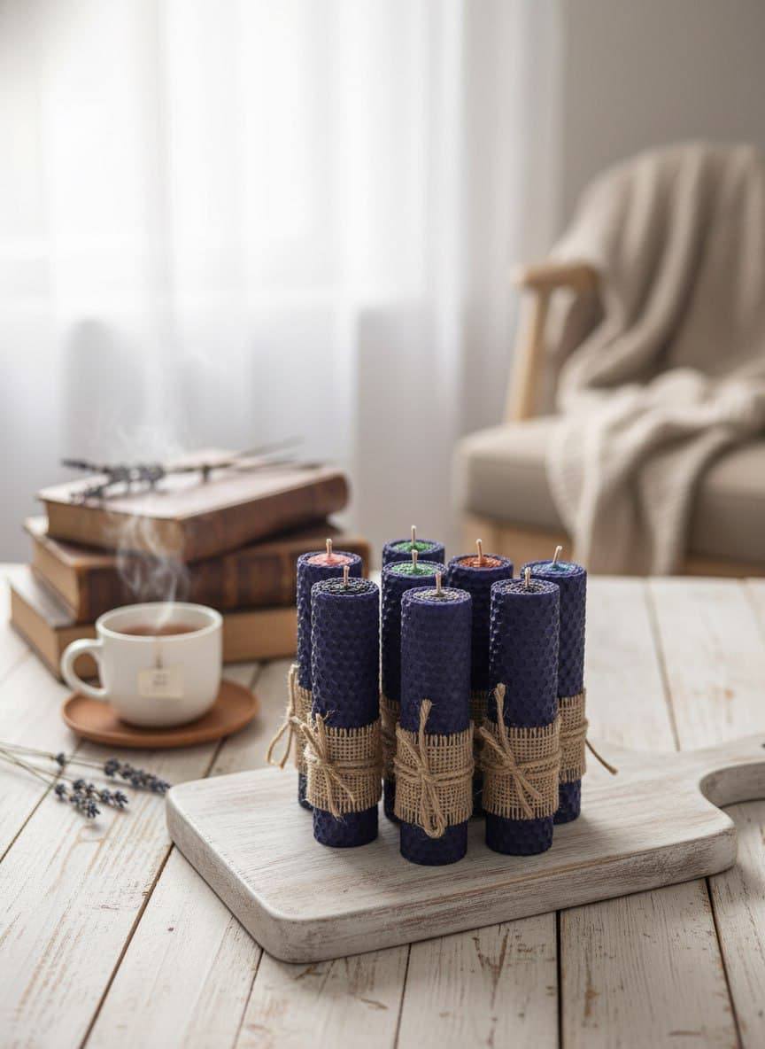 Откройте для себя магию натуральных материалов с нашими свечами из вощины! Изящные цилиндрические формы, покрытые рельефным узором в виде пчелиных сот, станут не только источником мягкого света, но и изысканным элементом декора. В коллекции представлены свечи в четырёх завораживающих оттенках: насыщенном фиолетовом, нежном розовом и тёплом янтарном. Каждая свеча — это ручная работа, воплощающая заботу о деталях и любовь к природным материалам. Создайте атмосферу уюта и гармонии в своём доме с этими уникальными свечами.