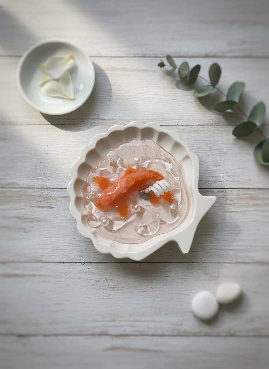 Эта уникальная свеча ручной работы — настоящий миниатюрный мир, застывший в гелевом воске. Изделие сочетает в себе изысканность гипсовой основы и прозрачность гелевого воска, создавая эффект подводного пейзажа. Особенности: