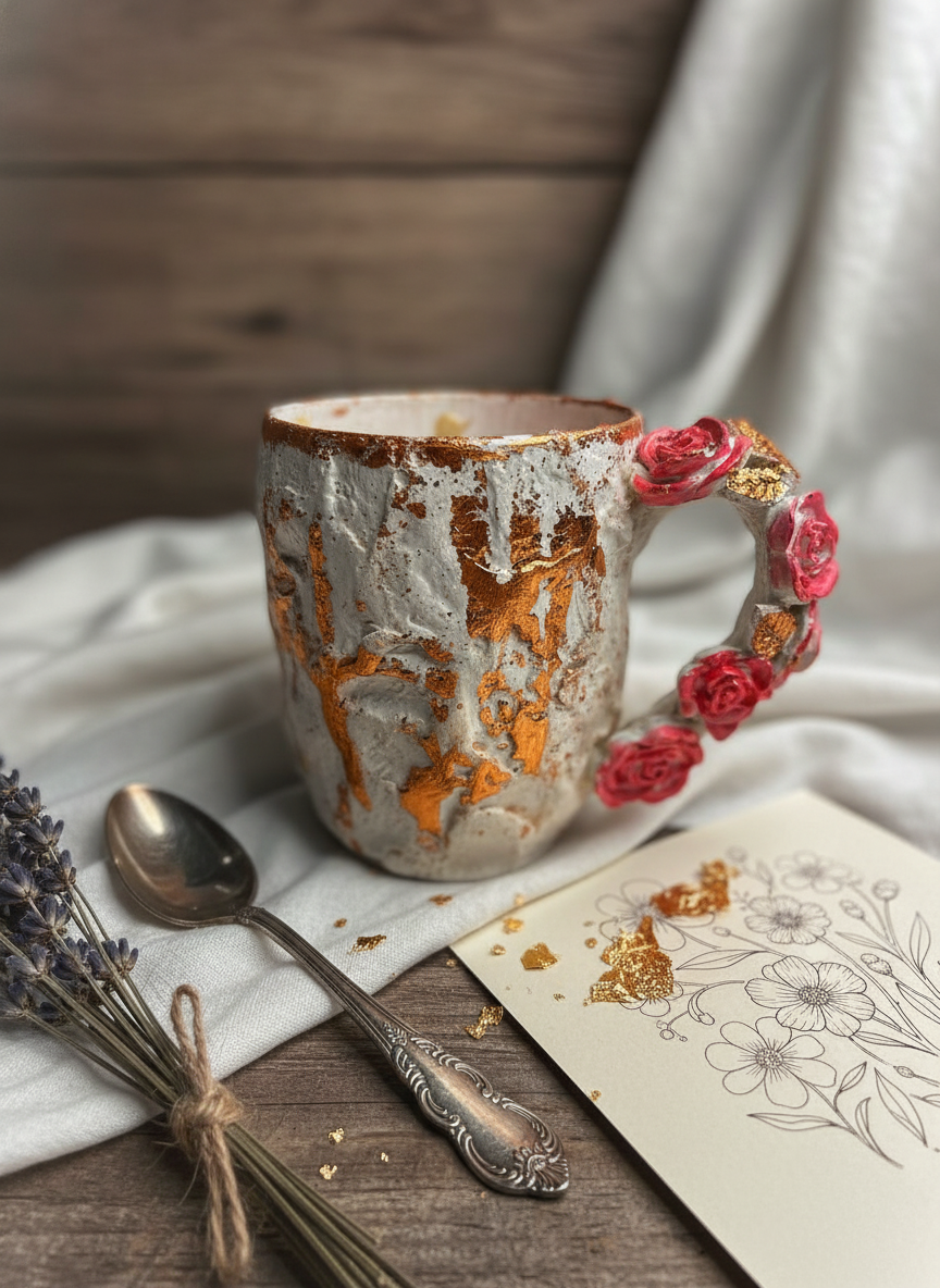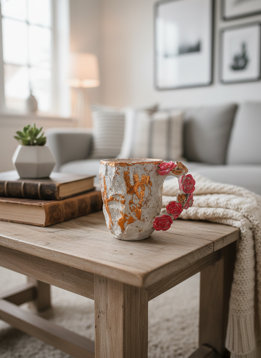Форма: асимметричная, с мягкими изгибами, подчёркивающая ручную работу и уникальность каждого экземпляра.