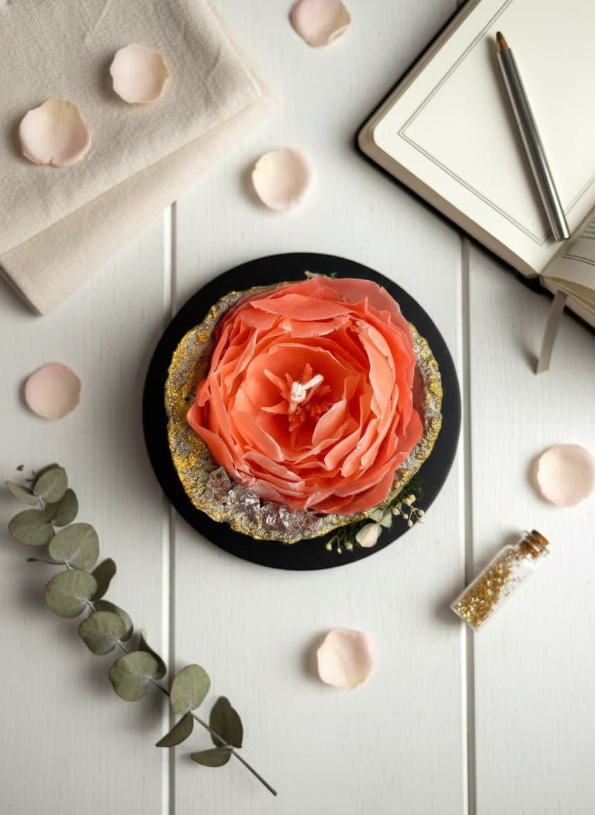 Эта свеча — не просто источник света, а произведение искусства, которое сочетает в себе природную красоту, мастерство ручной работы и функциональность. Позвольте себе наслаждаться каждым моментом с «Роскошной розой»!