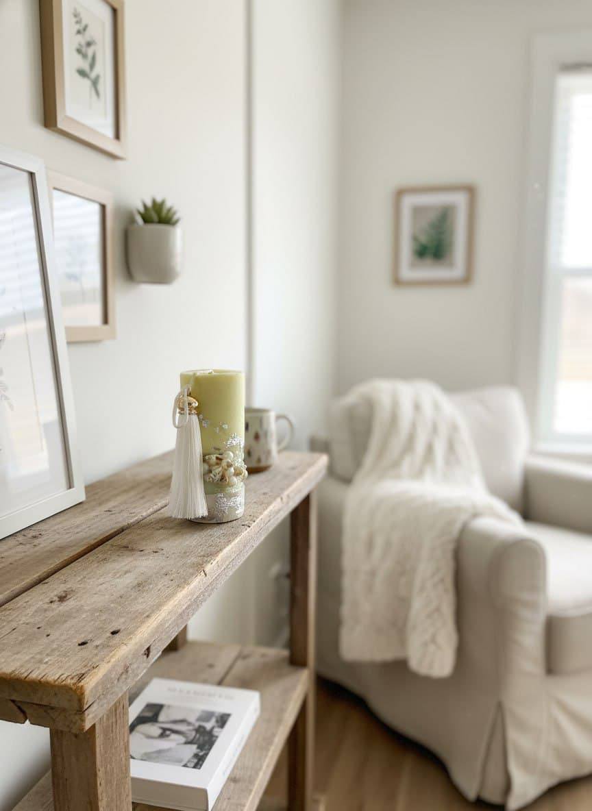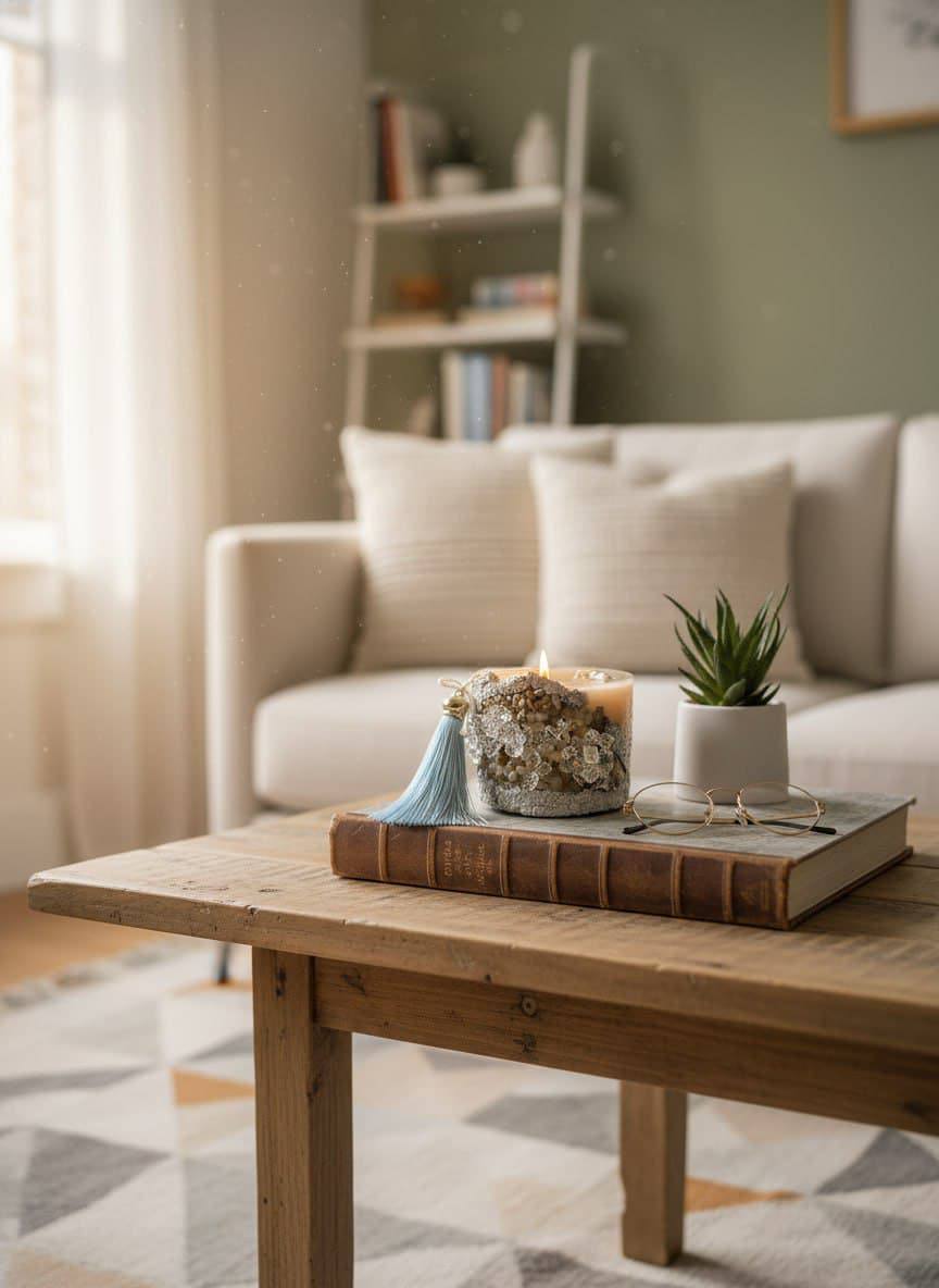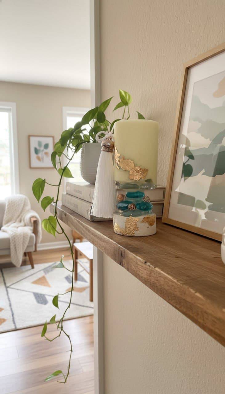 центральным акцентом на журнальном столике, полке или каминной зоне;